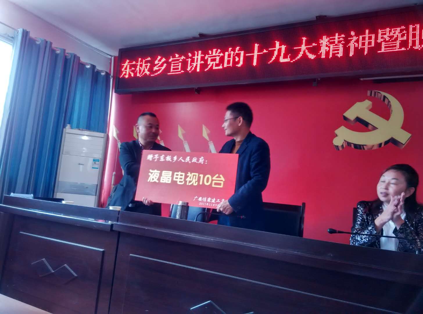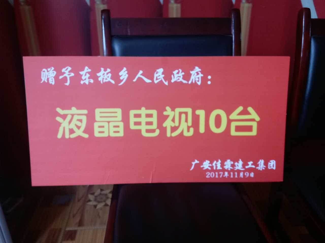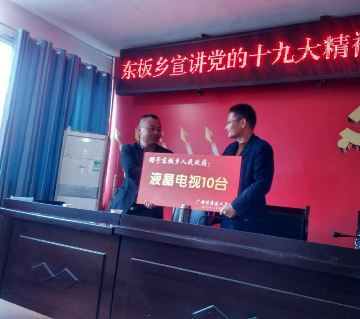 廣安佳霖建工集團(tuán)贈予東板鄉(xiāng)人民政府十臺液晶電視